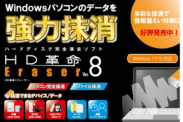 「HD革命/Eraser Ver.8 パソコン完全抹消」のアップデータ(Ver.8.0.1)を公開いたしました。